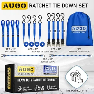 Included soft loop tie-down straps offer added protection for delicate cargo, ensuring it arrives unscathed. With AUGO Ratchet Straps, hauling becomes effortless, leaving you with peace of mind on every journey.